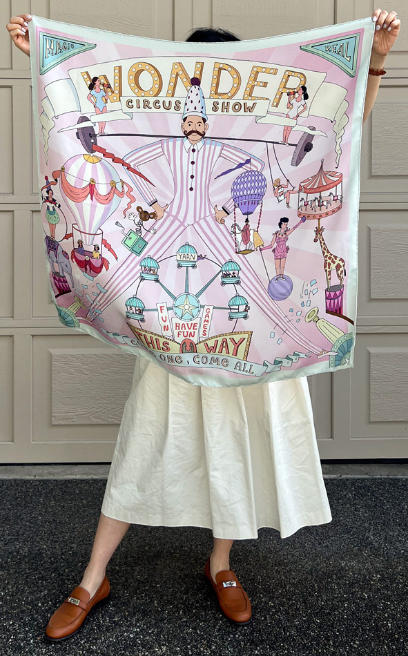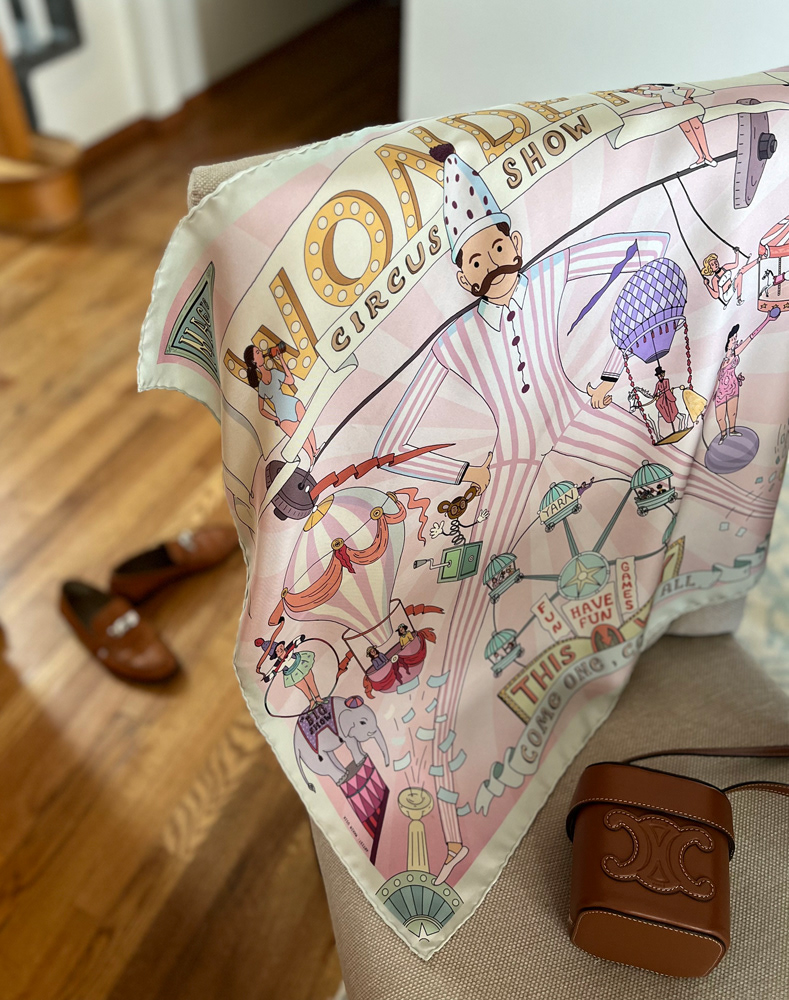 Together with Seoul (South Korea) based fashion brand YARN we designed and I illustrated a beautiful and playful silk scarf. Scarf is 100% silk, printed in Italy. Size 90x90cm.