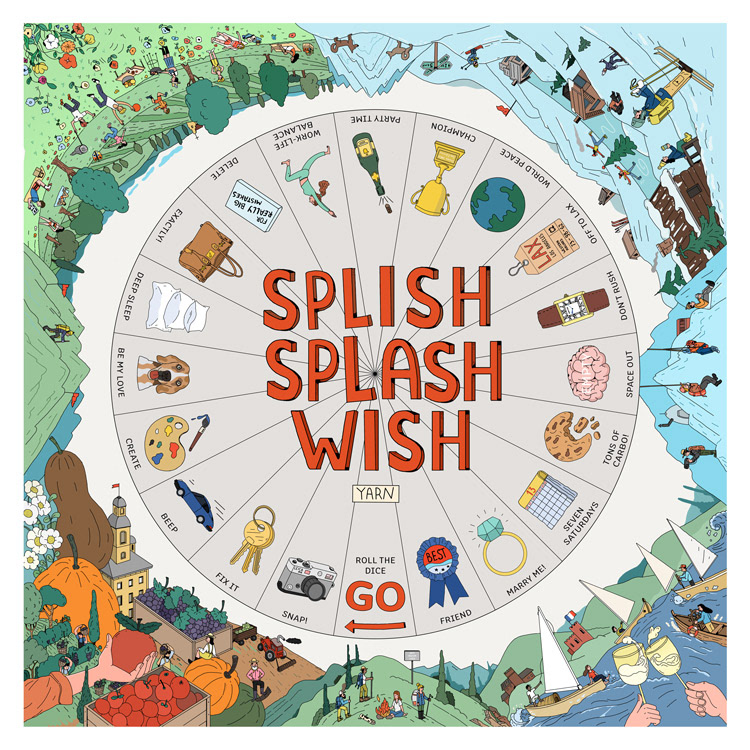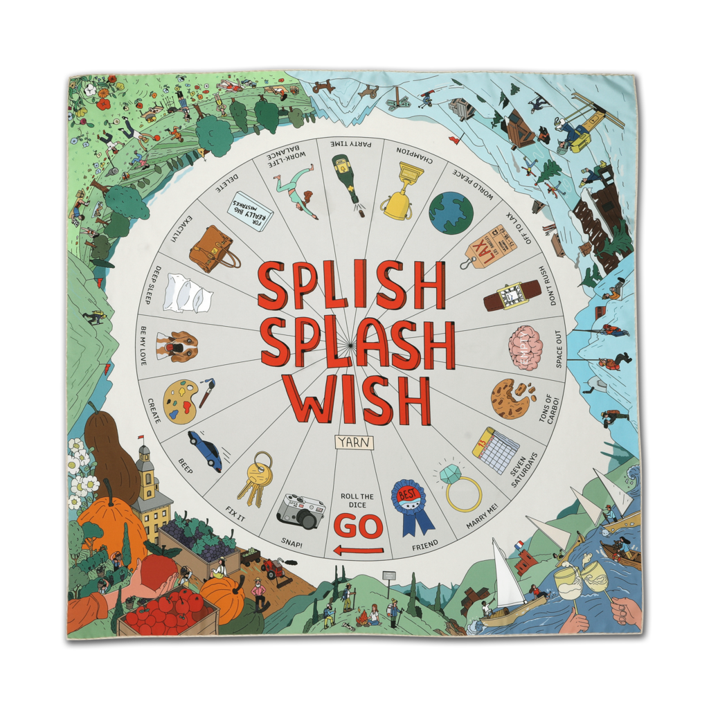 Illustrations depicting Monopoly board game with various stations (wishes). Four seasons of the year are depicted around. Beautiful silk scarf printed onto 100% Italian silk. 90 x 90cm.