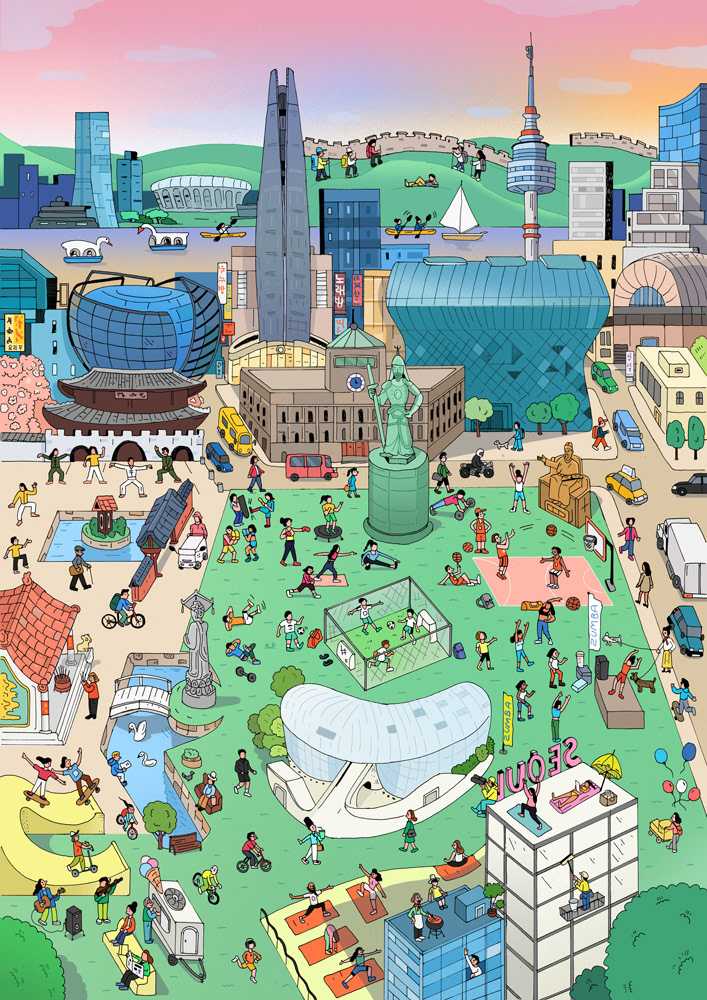 Printed and online poster for Seoul Metropolitan Government about Seoul city sport activities.