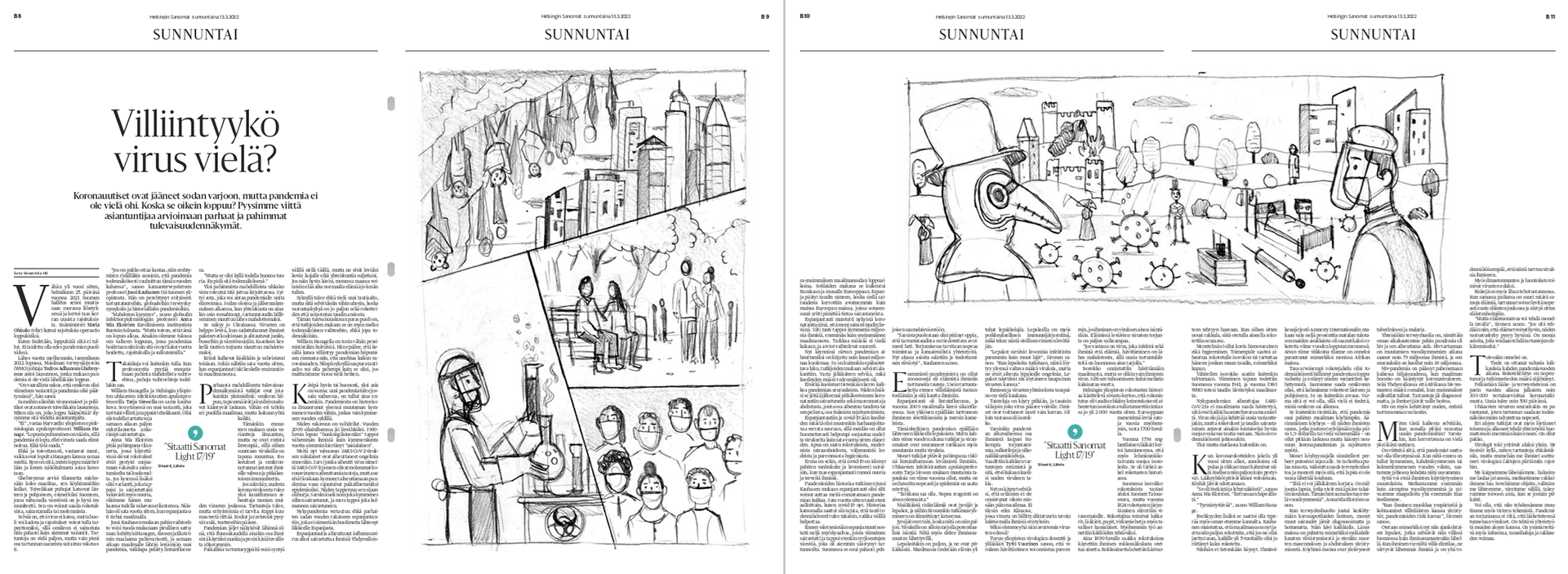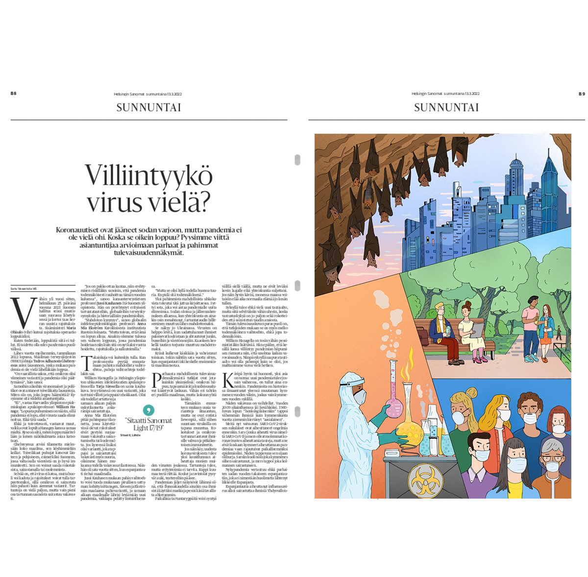 Opener and inside illustrations for The Helsingin Sanomat, Sunday issue (Finland).